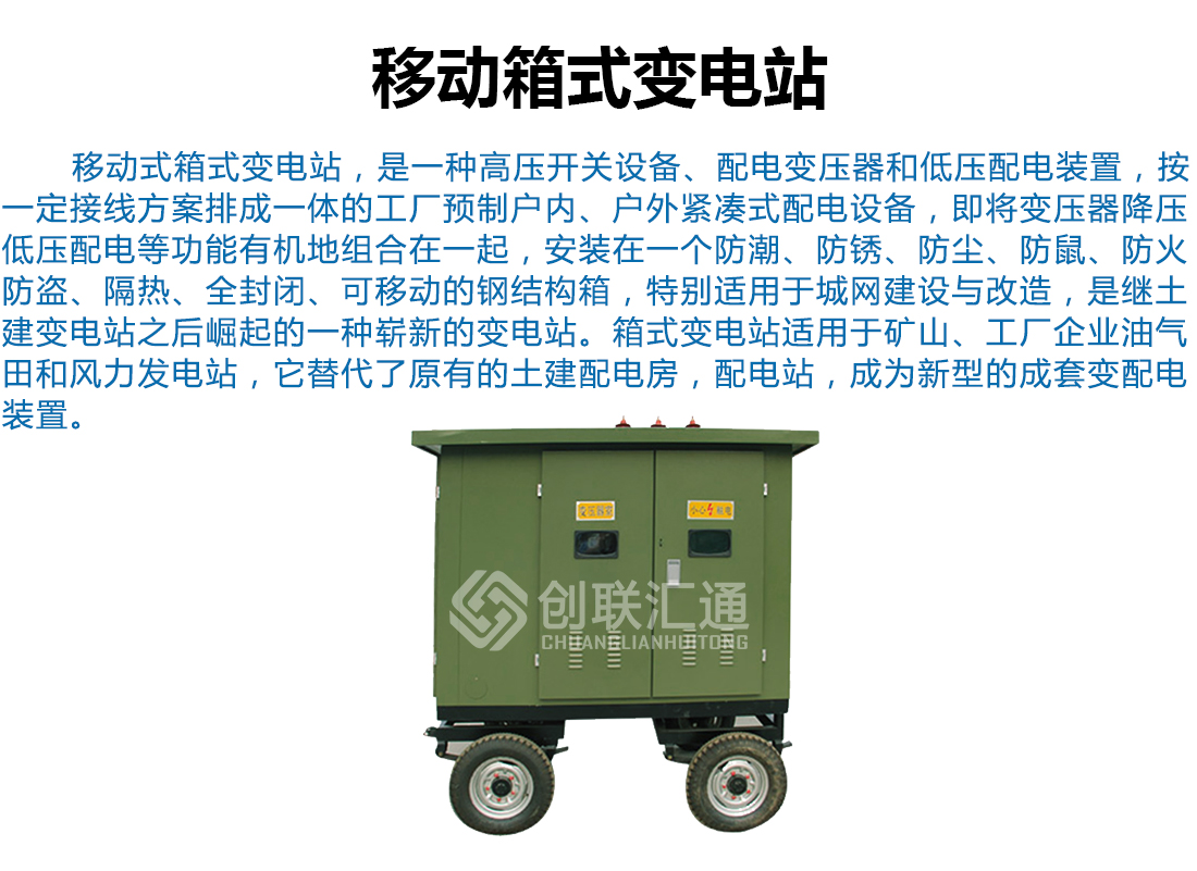移動式箱式變電站適用于住宅小區、城市公用變、繁華鬧市、施工電源等,用戶可根據不同的使用條件、負荷等級選擇箱式變。